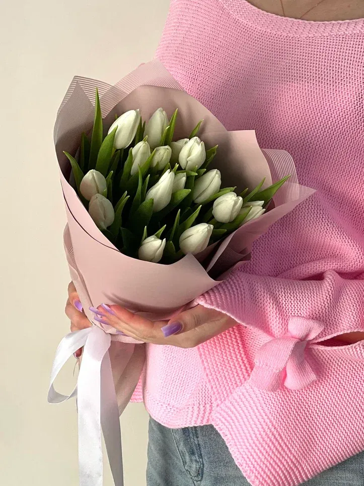 Букет из свежих тюльпанов - это идеальное выражение теплых чувств. Эти лепестки символизируют любовь, заботу и радость. Такой подарок подчеркнет вашу искренность и создаст атмосферу весеннего настроения в любой день.