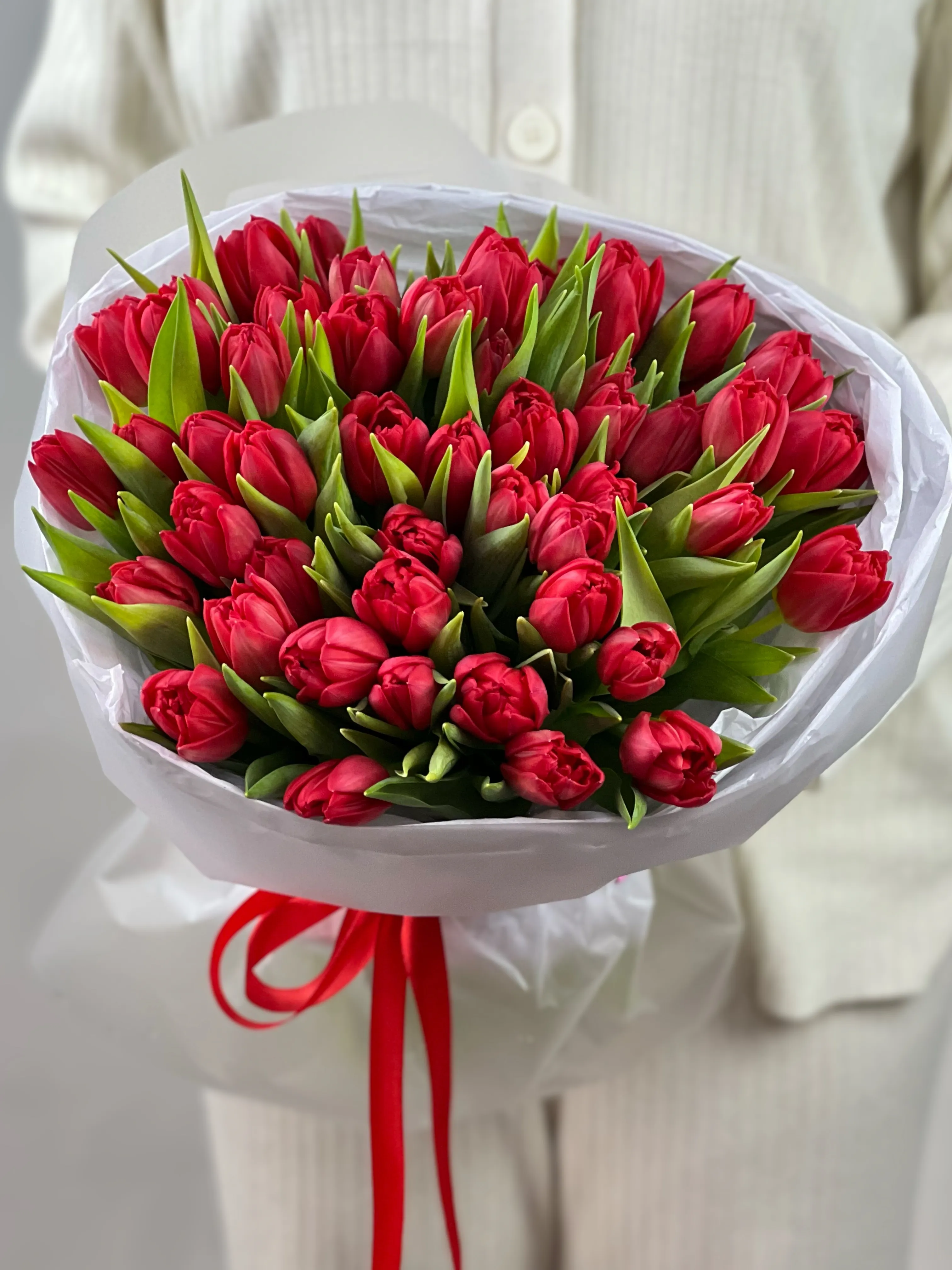 Букет из алых тюльпанов — символ страсти, нежности и искренних чувств. Яркие бутоны, словно капли любви, дарят тепло и радость, создавая атмосферу праздника. Идеальный подарок для выражения глубоких эмоций и восхищения.