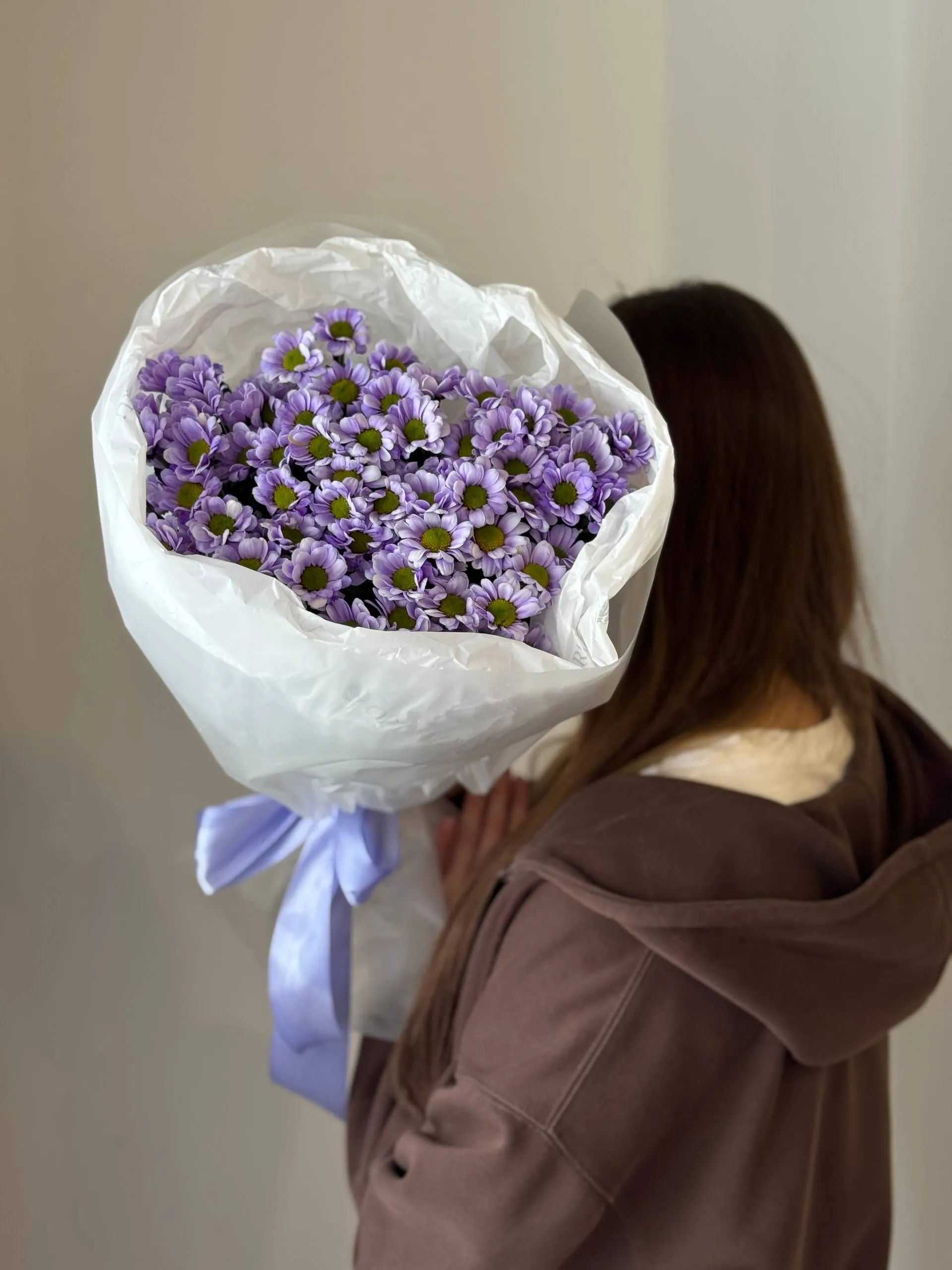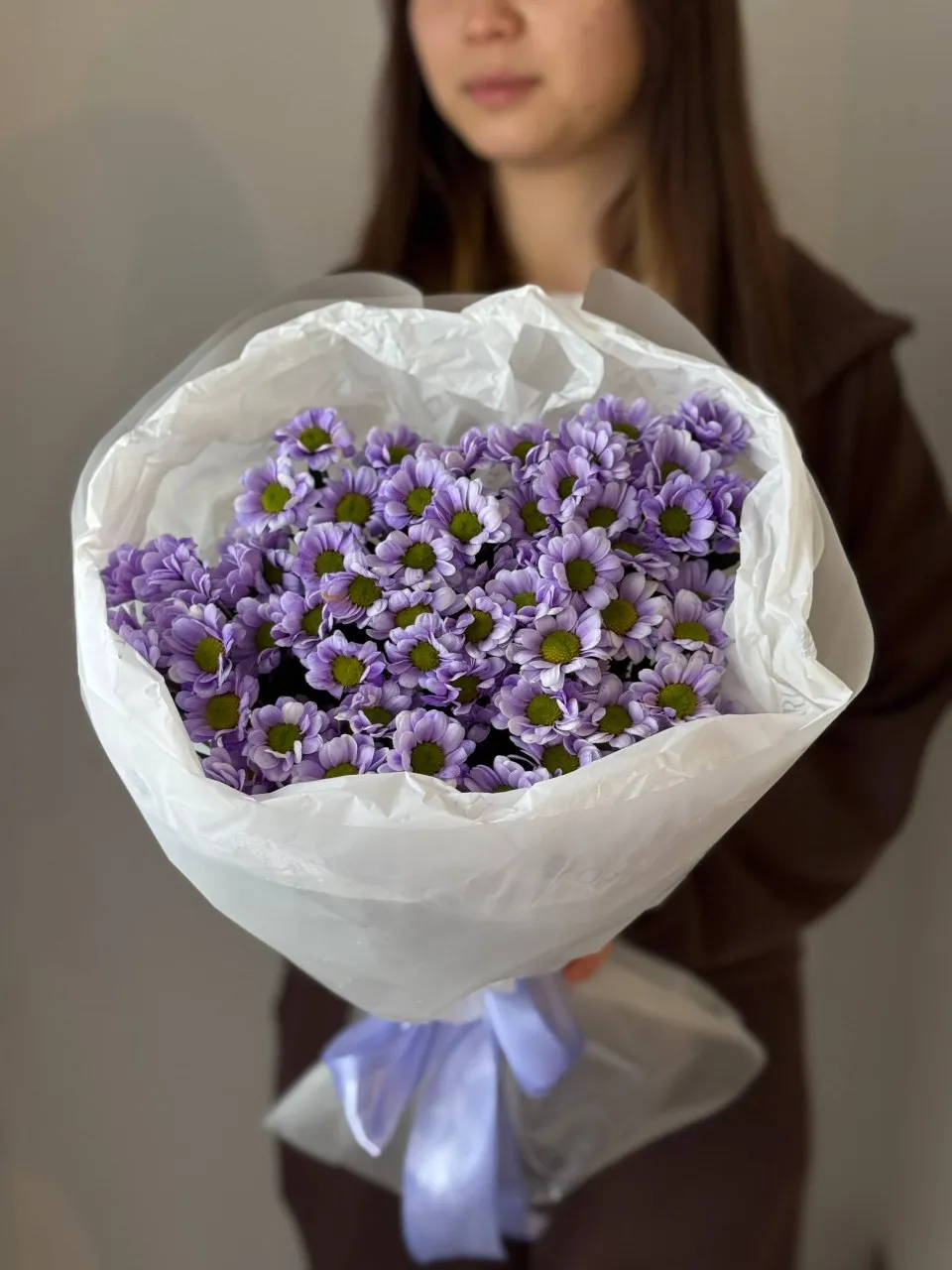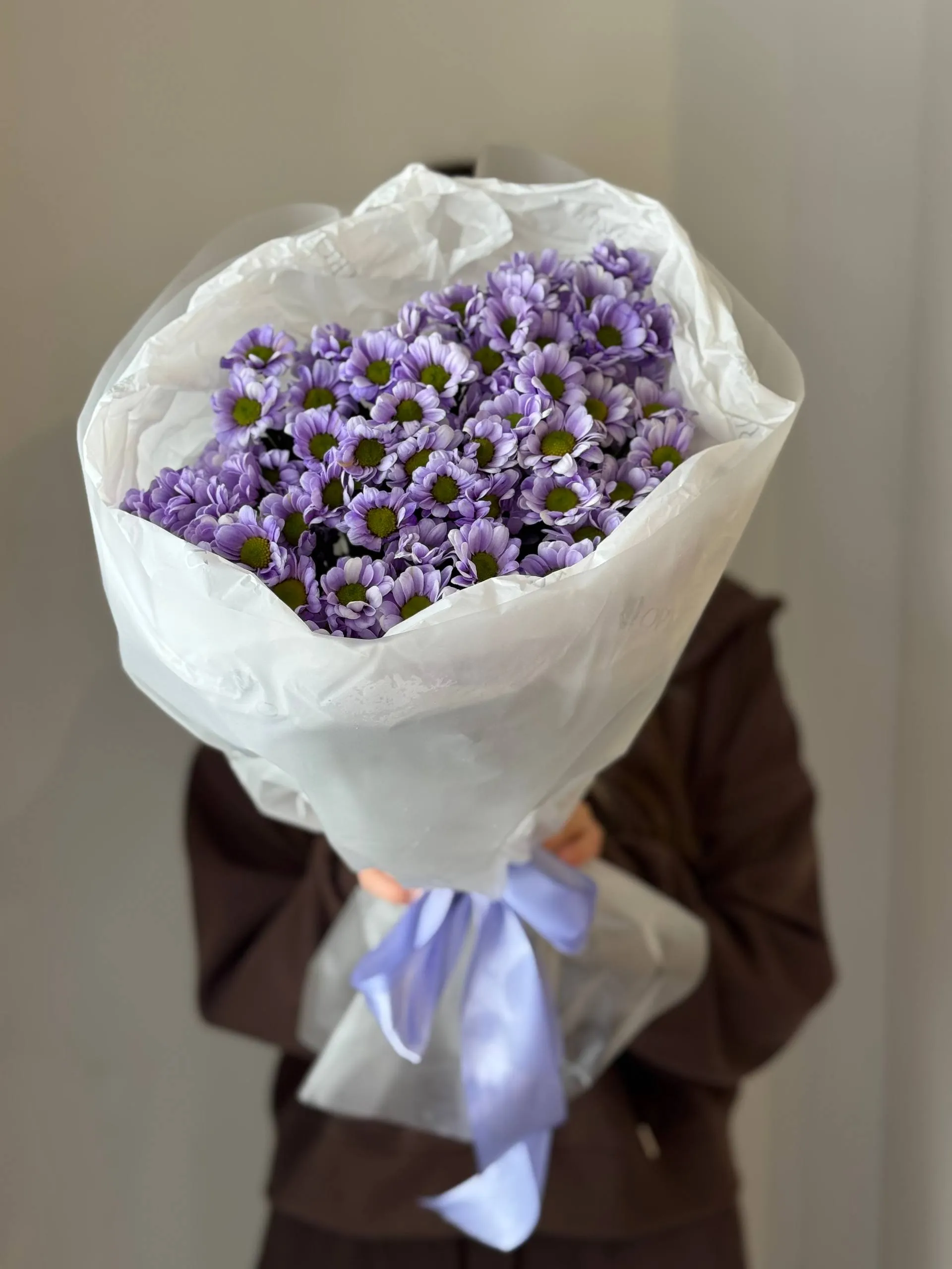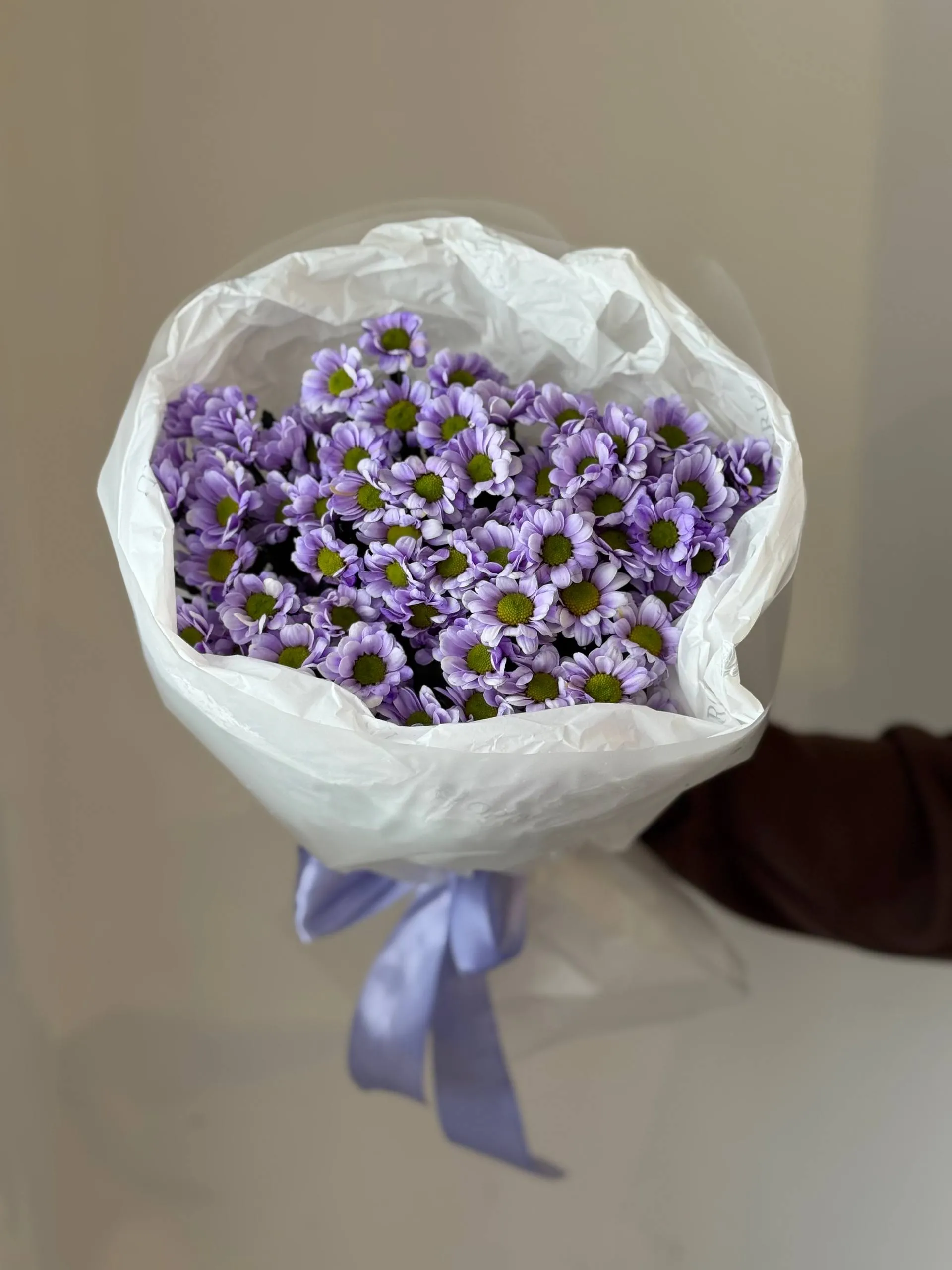 Этот изысканный букет из хризантем Сантини порадует вас своей элегантностью и свежестью. Идеальный выбор для подарка или украшения интерьера, он создаст атмосферу уюта и красоты.
