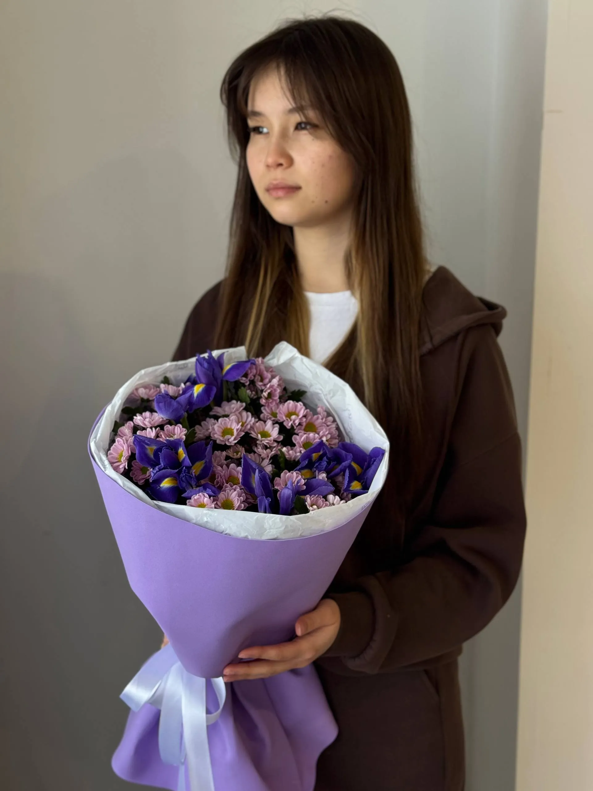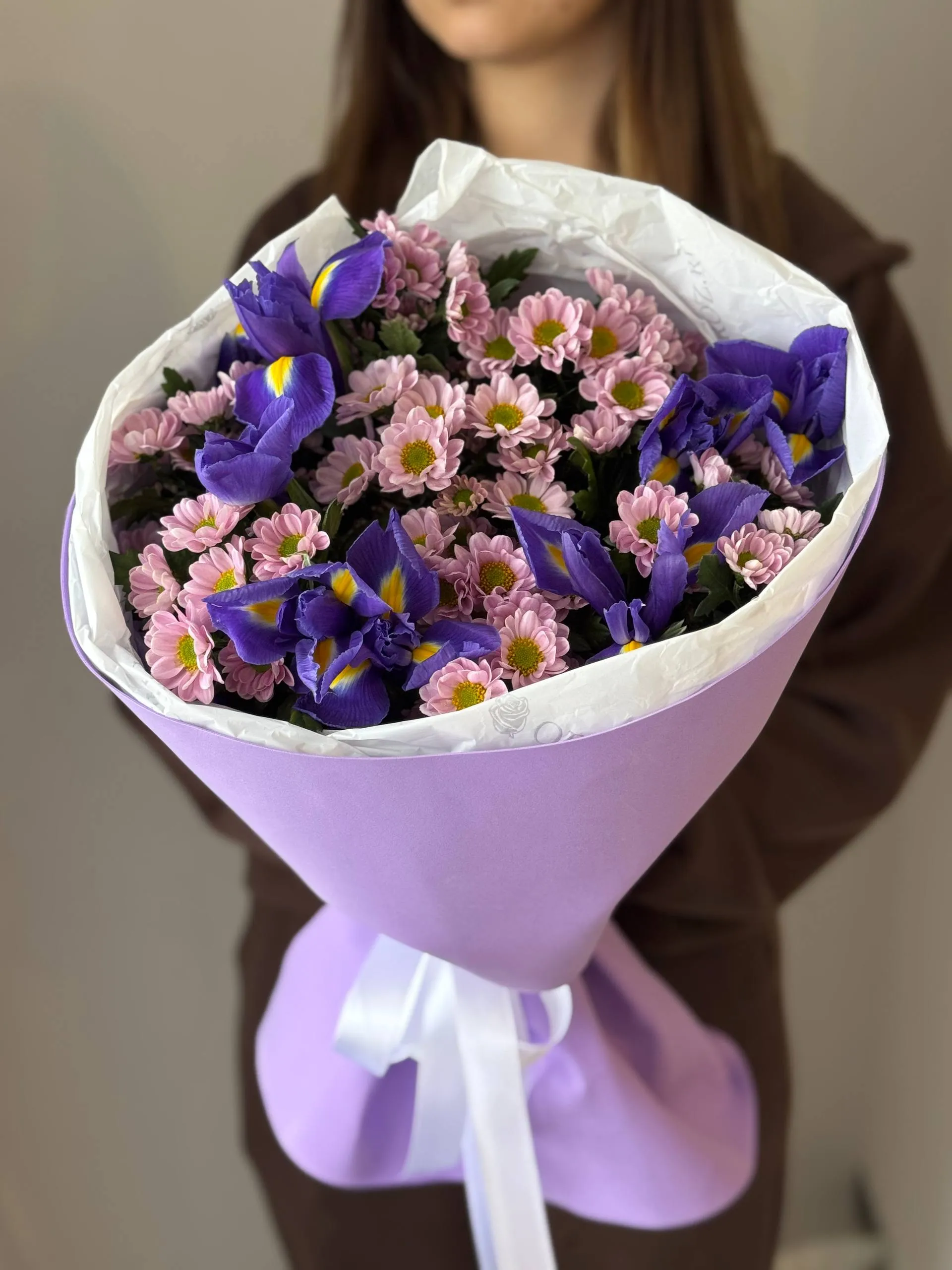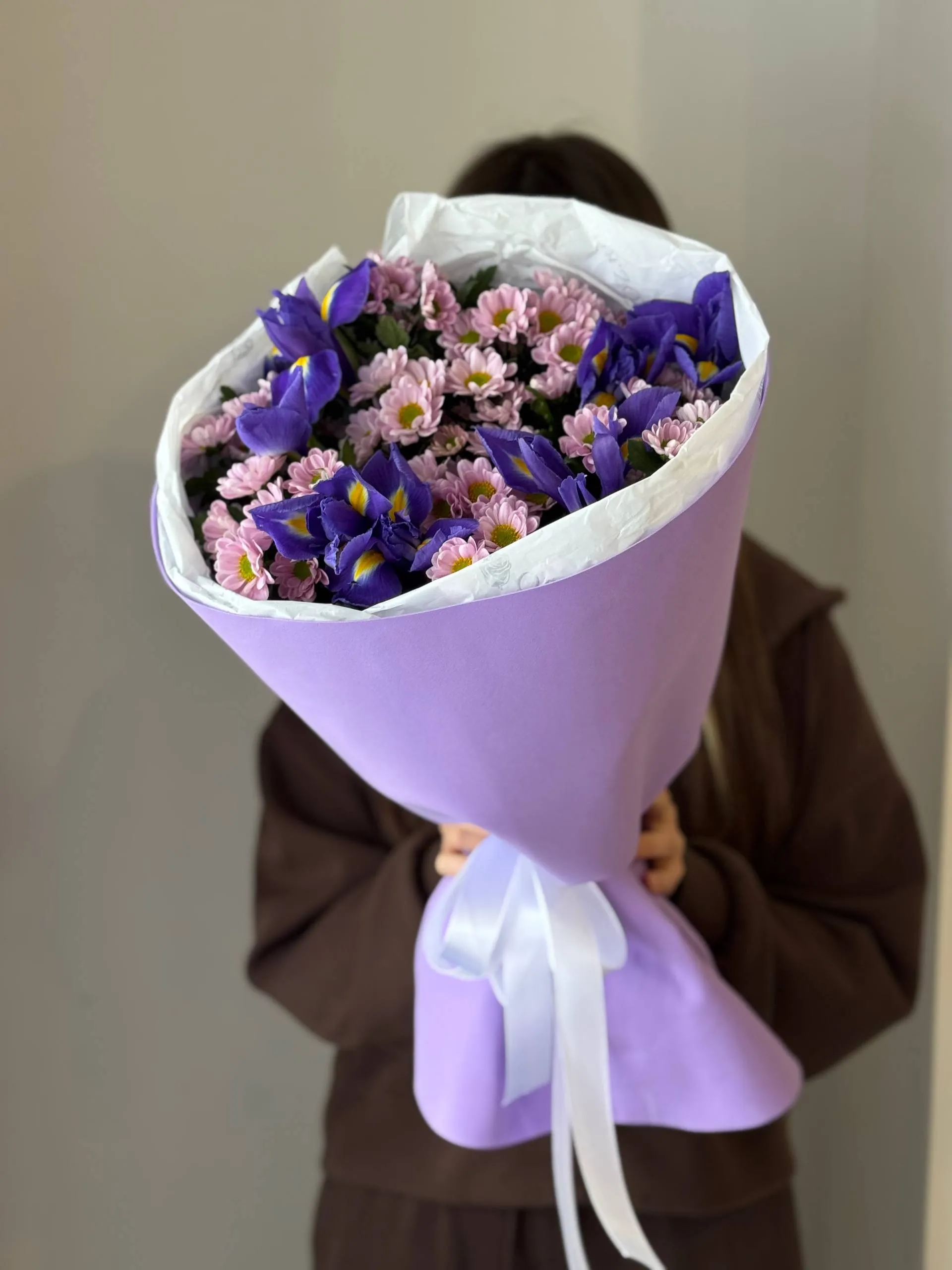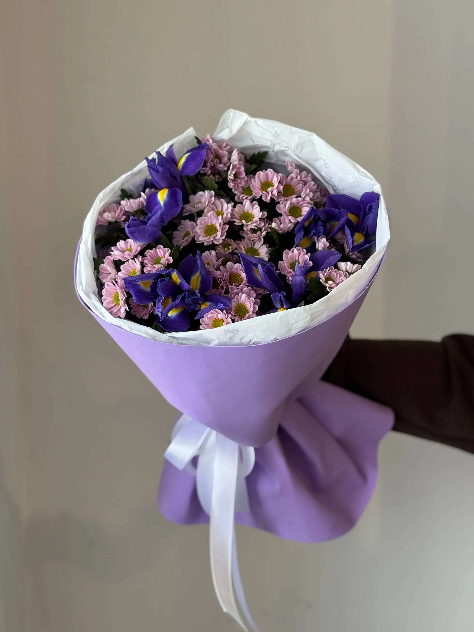Этот изысканный букет из хризантем Сантини порадует вас своей элегантностью и свежестью. Идеальный выбор для подарка или украшения интерьера, он создаст атмосферу уюта и красоты.