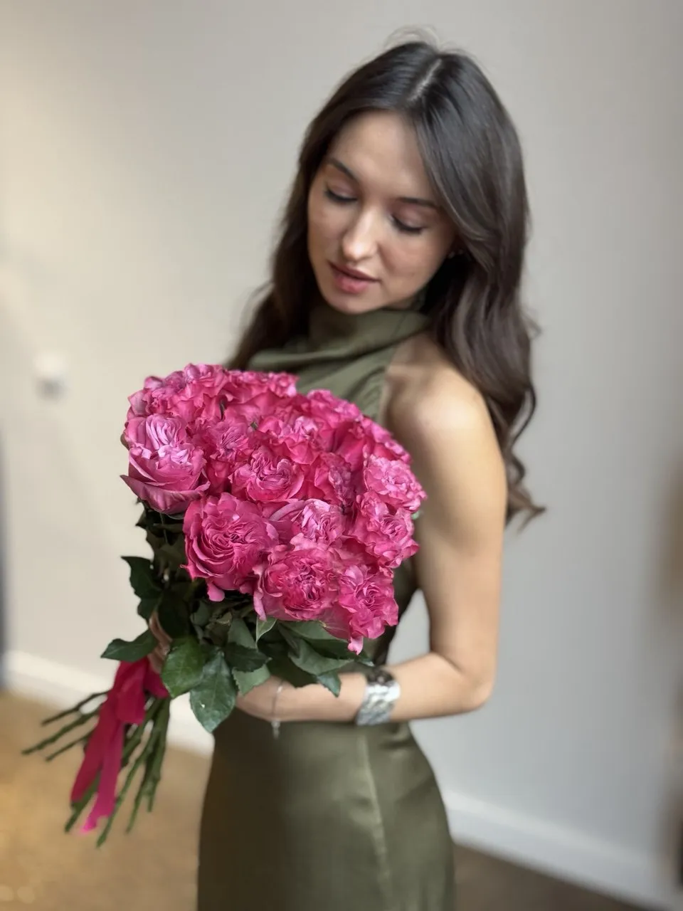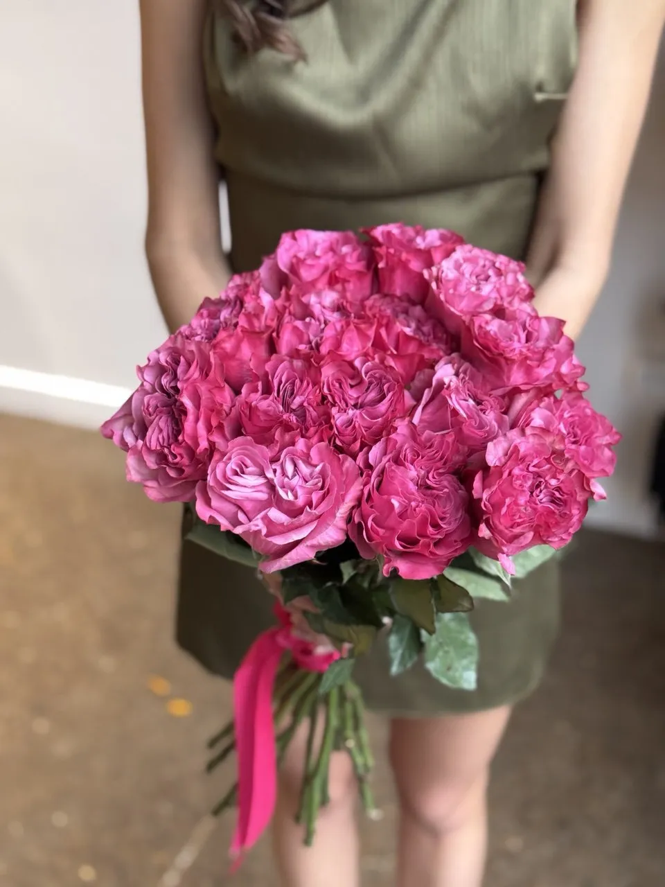 Этот изысканный букет пионовидных роз наполнен нежностью и романтикой. Большие, пышные цветы в мягких оттенках создают атмосферу уюта и красоты, идеально подчеркивая особое настроение любого праздника.