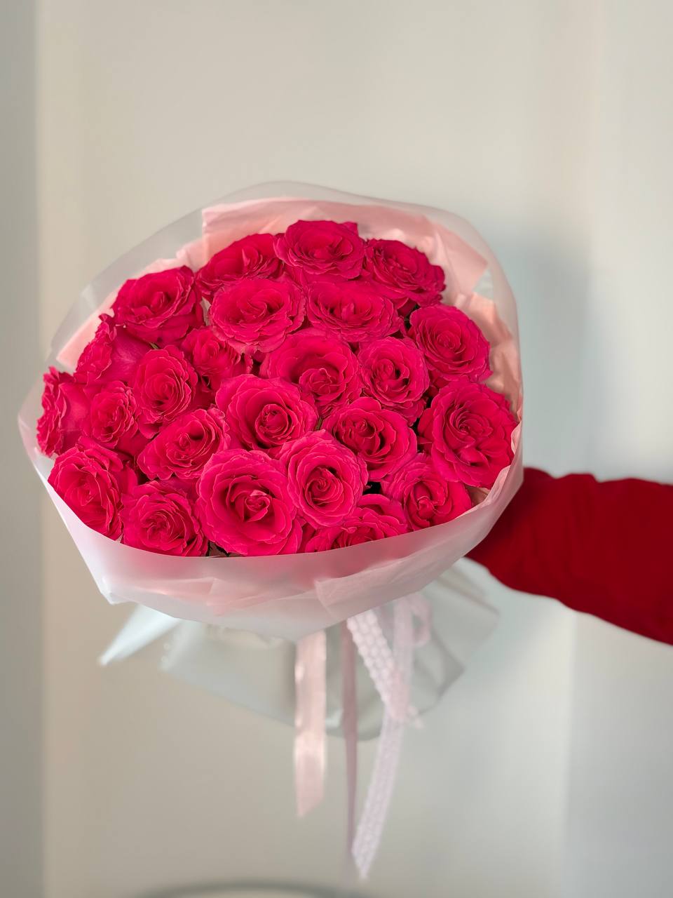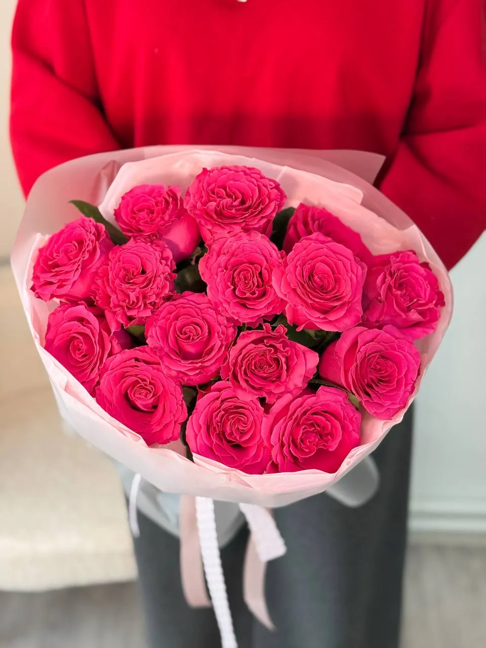 Этот изысканный букет из розовых роз символизирует нежность, любовь и трогательные чувства. Идеальный выбор для выражения теплых эмоций и создания особого настроения.