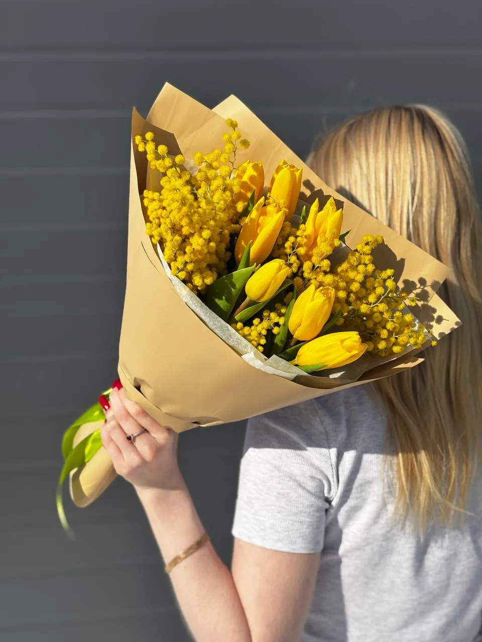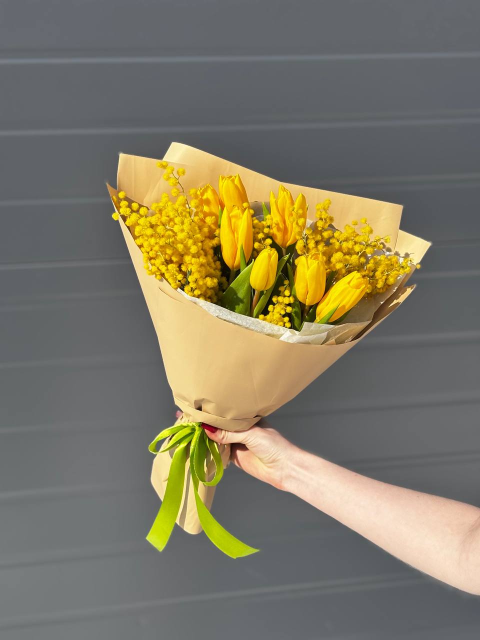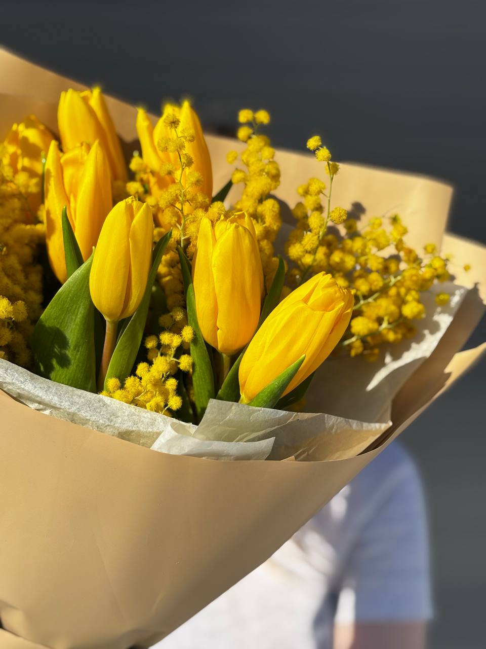 Яркий и солнечный букет из желтых тюльпанов и мимозы станет идеальным подарком, чтобы поднять настроение и выразить теплые чувства. Нежные тюльпаны в сочетании с пушистыми веточками мимозы создают атмосферу весны, радости и света. Такой букет подарит тепло и улыбку!