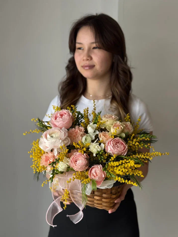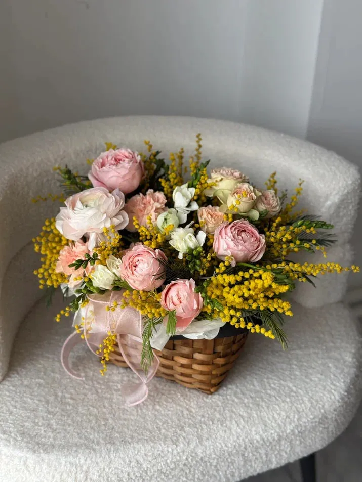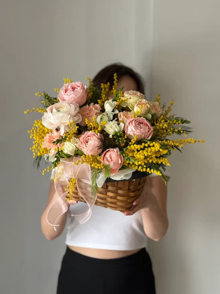 Очаровательный букет из свежих веточек мимозы, символа весны и нежности. Идеальный подарок для поднятия настроения и выражения тепла и любви в любой праздник или просто так.