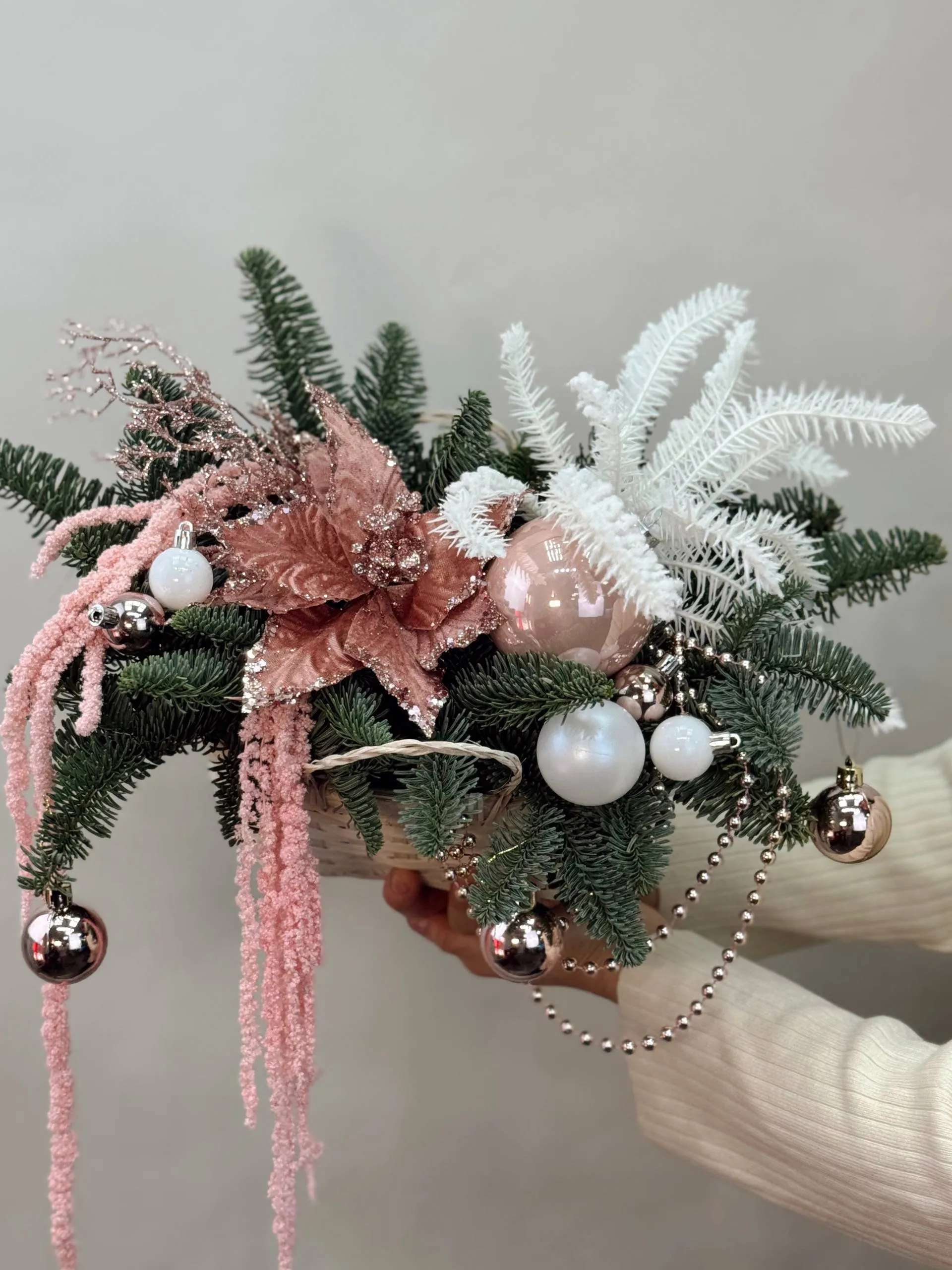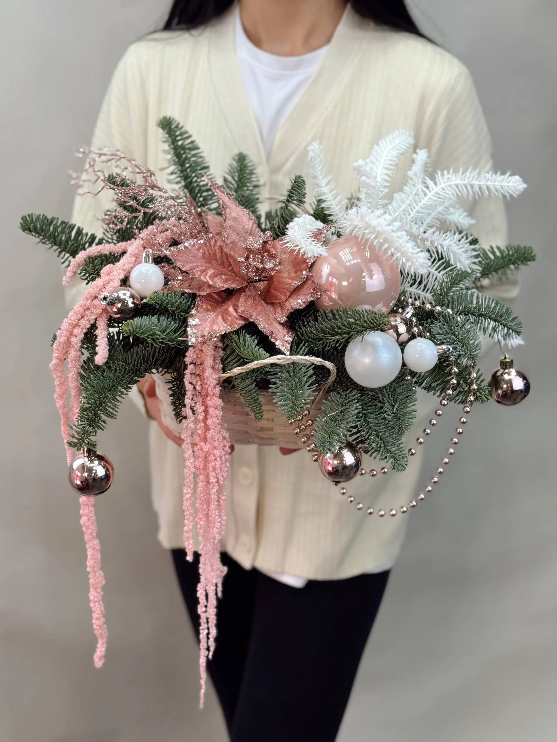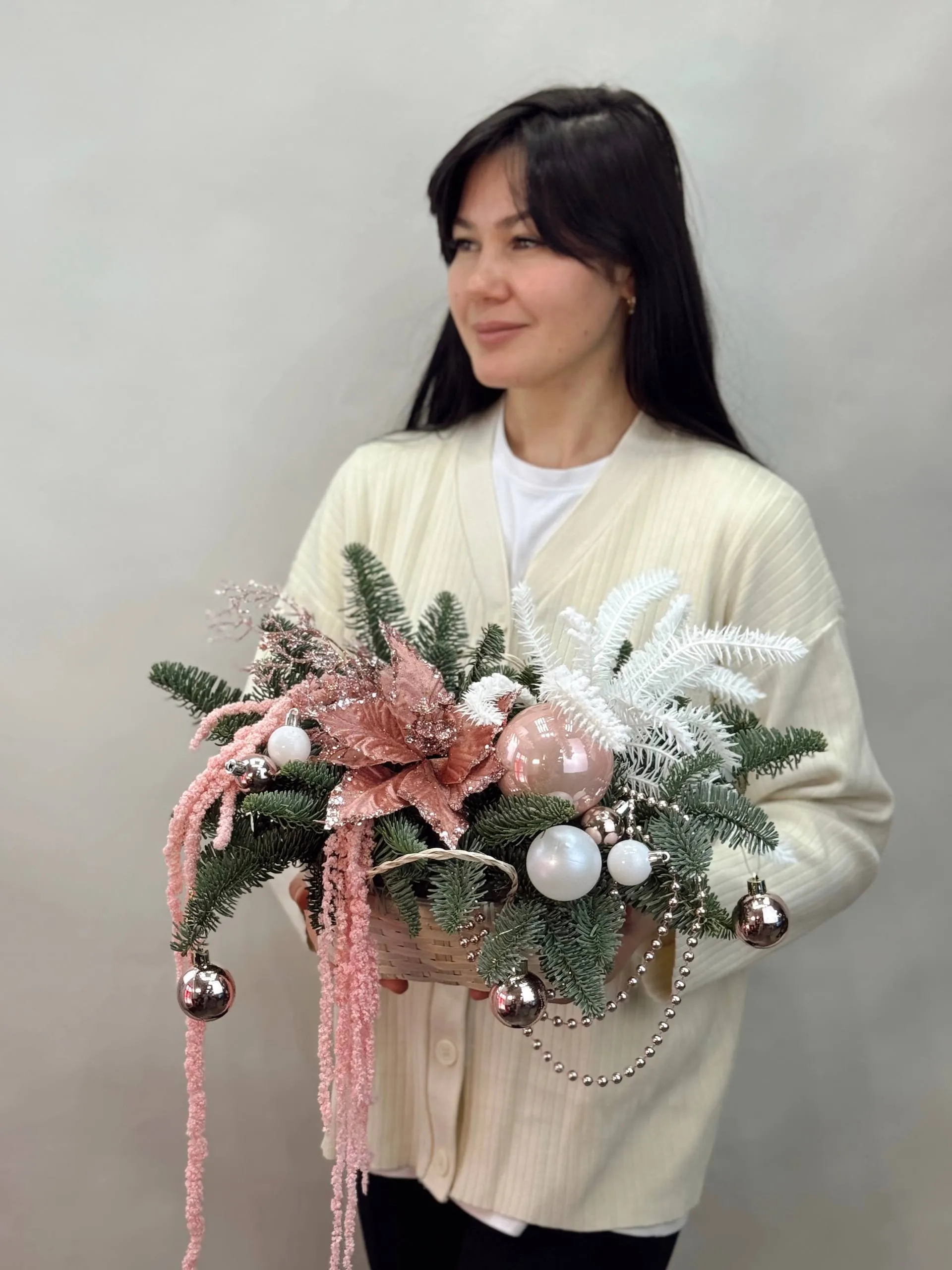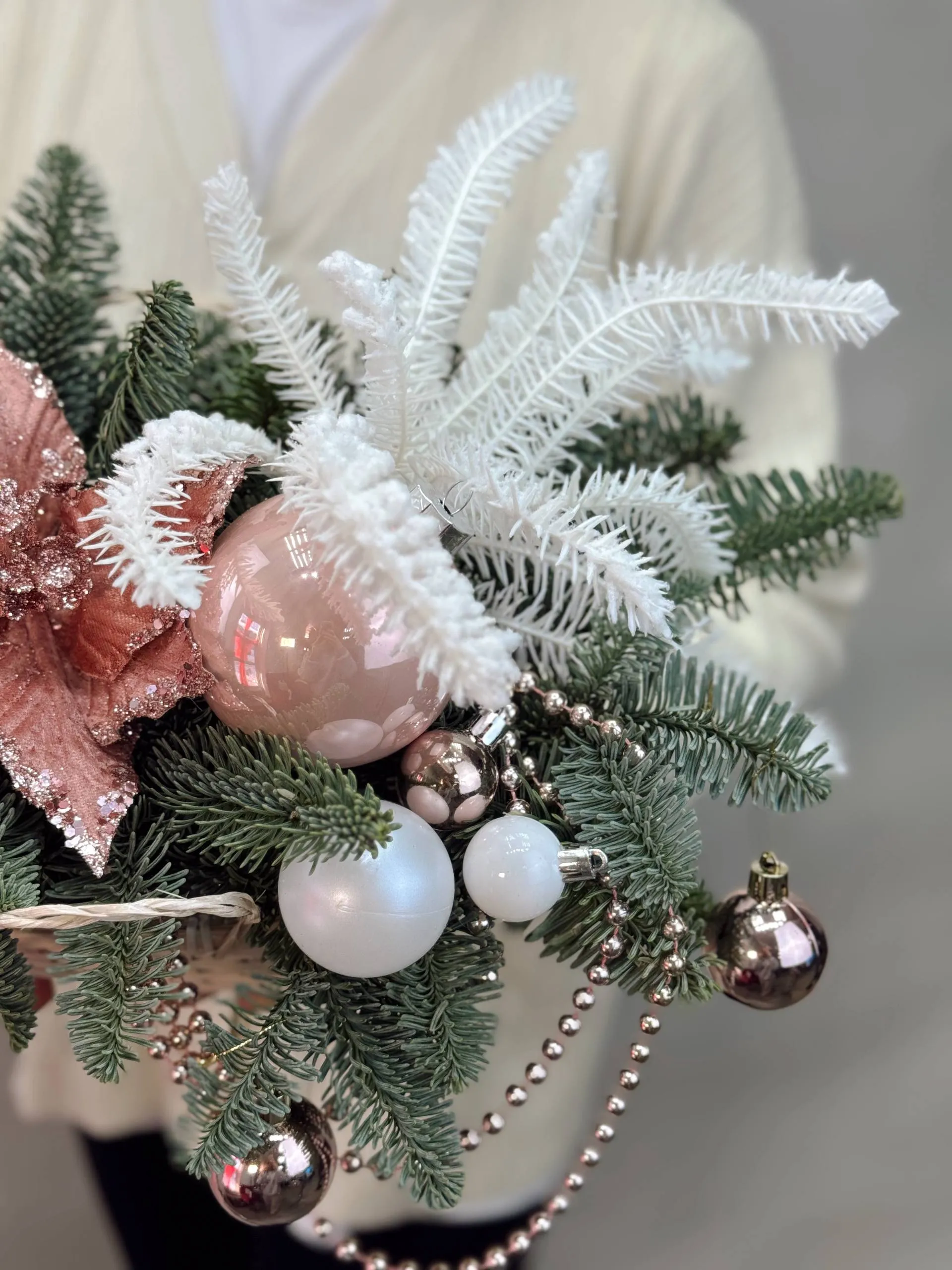 Изысканные новогодние букеты и композиции из нобилиса и игрушек создают праздничную атмосферу и радуют глаз. Вдохновляйте близких волшебством и теплом зимних праздников!