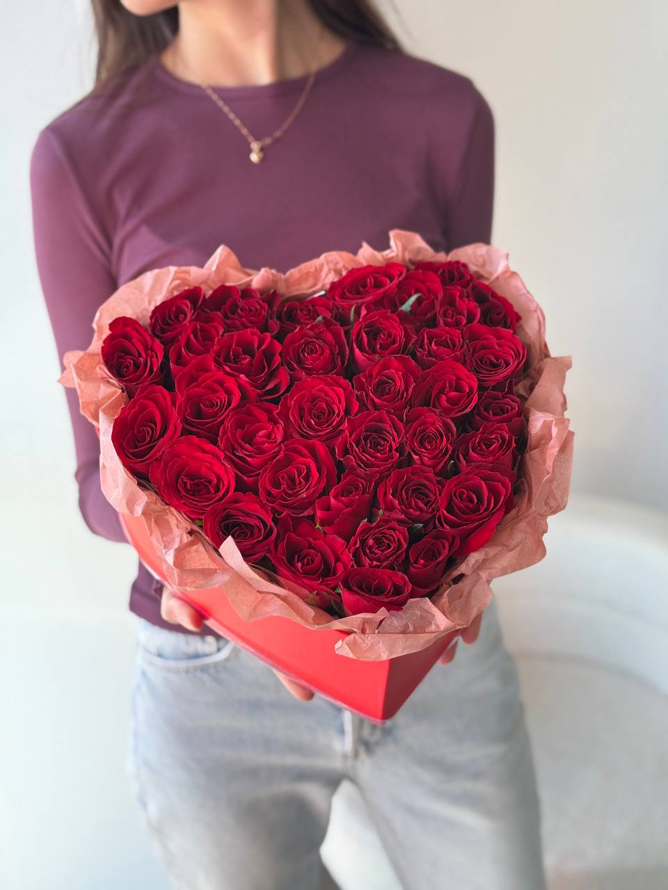Эта романтичная композиция создана специально для Дня всех влюбленных, чтобы выразить самые теплые и искренние чувства. Сердце, выложенное из свежих и ароматных цветов, символизирует любовь, преданность и нежность.
